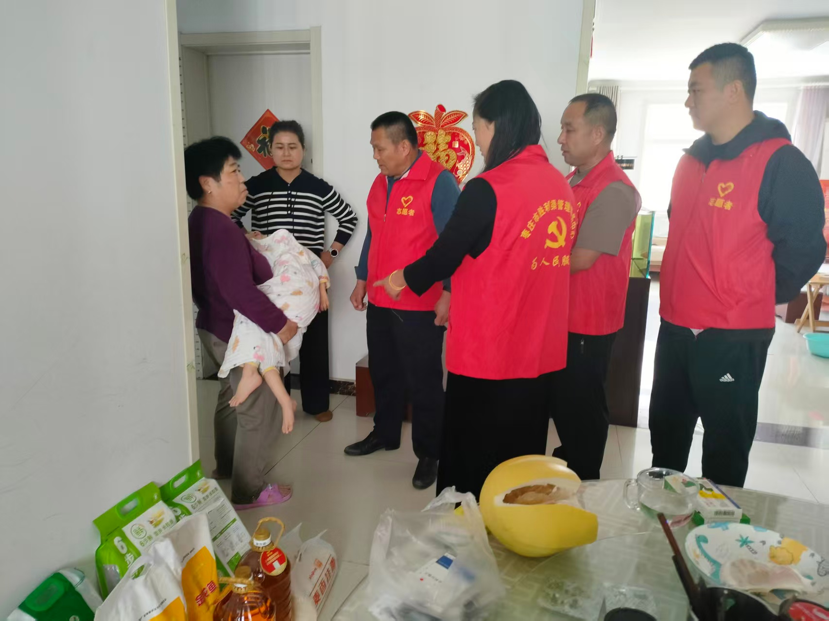 中心一行首先来到困难户家中,这个家庭因孩子罹患疾病,生活面临重重压力。党员干部细致察看居住环境,与家长亲切交谈,详细了解孩子病情、康复治疗情况以及家庭经济来源、政策保障落实情况。面对家长的忧思,中心成员耐心倾听,鼓励他们树立信心,积极治疗、进行康复训练,并送上米、面、油、面条等慰问品,同时叮嘱随行社区干部要格外关注此类特殊困难家庭,加强日常走访,在医疗救助、康复服务等方面提供精准帮扶,切实为困难家庭纾难解困,点亮生活的希望。