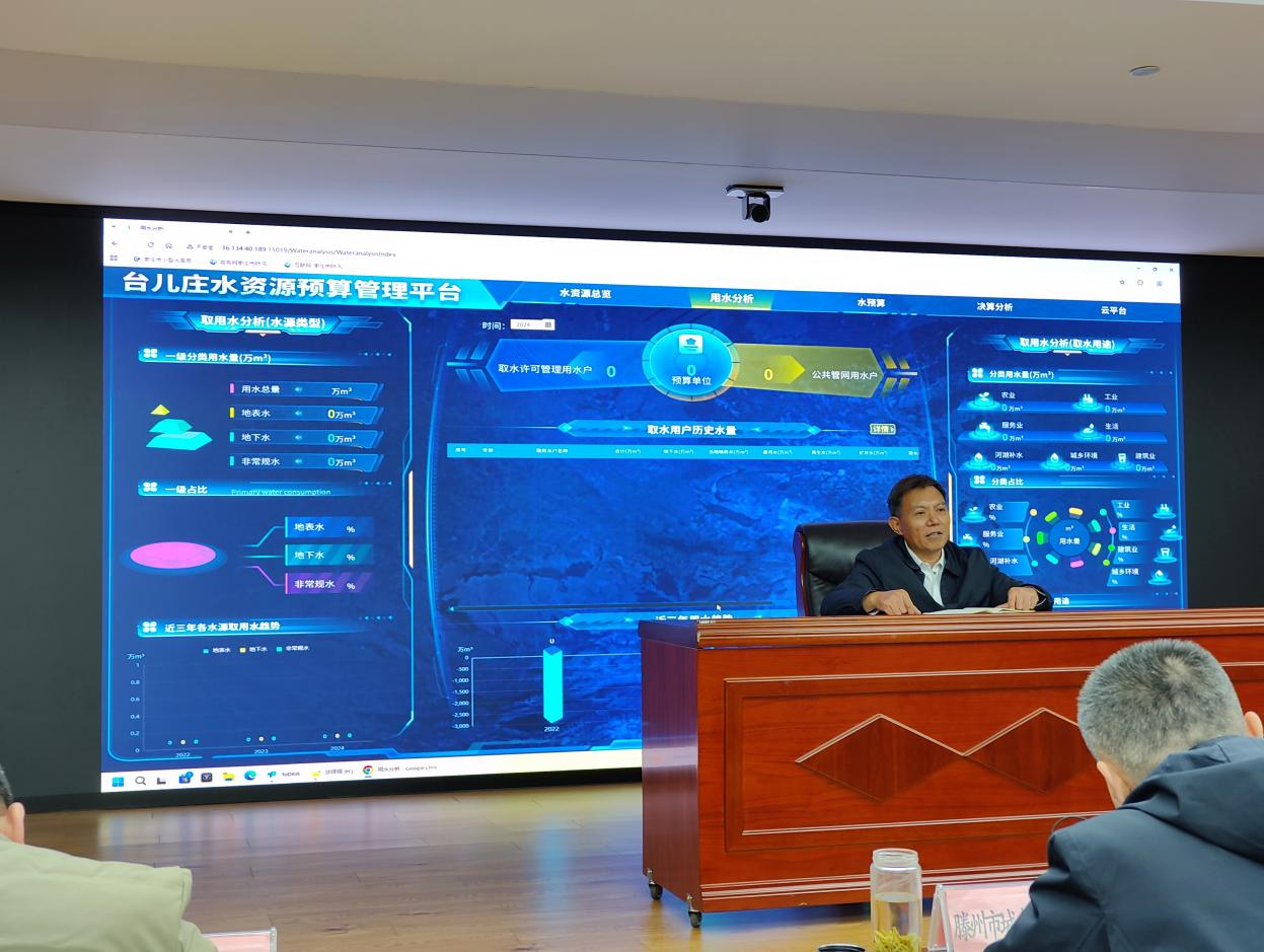 作为省级水预算管理试点,台儿庄区在会上作经验介绍:投资40万元打造水预算智能管理平台,构建大屏可视化、水权收储再配置、水预算流程管理、取用水在线计量检测等核心模块,实现了水资源总览、预算执行、水权交易、决算分析全流程数字化管控,为精准配置水资源、规范用水行为提供了有力技术支撑。其建设经验为全市推进水预算管理智能化、规范化提供了重要借鉴。